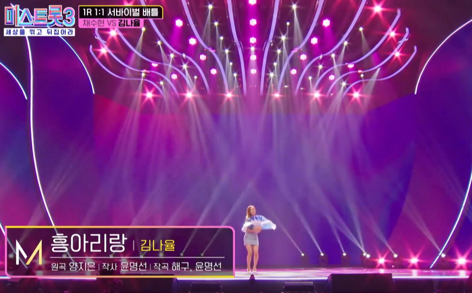 채수현 vs 김나율 챔피언부는 다르구나를 느끼해준 첫 번째 무대. 참가하는 가요제마다 대상을 받는 그녀들이었지만, 정작 가수가 되고 싶다는 꿈을 이루지 못하고 있었던 상황에 절박한 심정으로 참가한 미스트롯 3 시골소녀의 부드러운 카리스마 청아한 고음과 섬세한 무대매너 그리고 청중을 사로잡는 절제된 창법을 보여준 채수현, 흥이 넘치는 신나는 무대를 화려한 부채 퍼포먼스와 노래실력으로 장악해 버린 김나율 둘 모두 올 하트를 현역가수들 수준에 도달했다는 극찬과 함께 다음라운드에 진출하게 되었습니다.