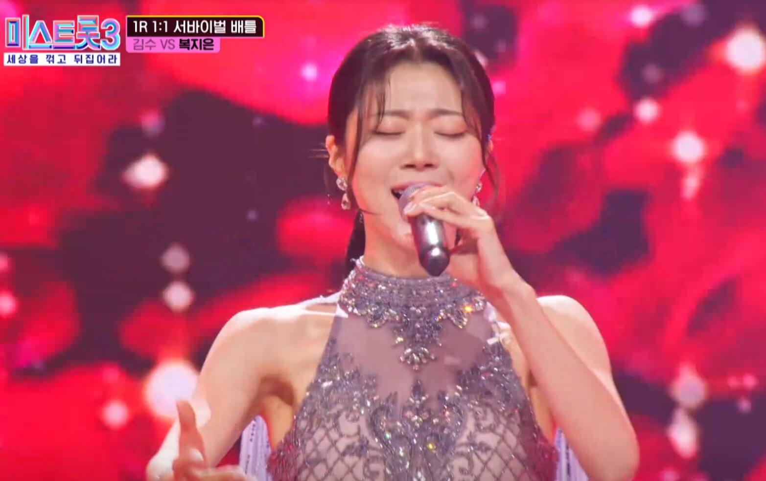 성악과 뮤지컬의 대결, 트롯으로 제2의 인생을 살아가려는 두 참가자들의 무대는 뮤지컬본연의 장기를 보유 준 김수의 무대와 성악가인 자신의 장점은 최대한 보여주면서도 트롯의 요소마저 살리며 복지은 참가자 홀로 올 하트 다음라운드에 진출하게 되었습니다.