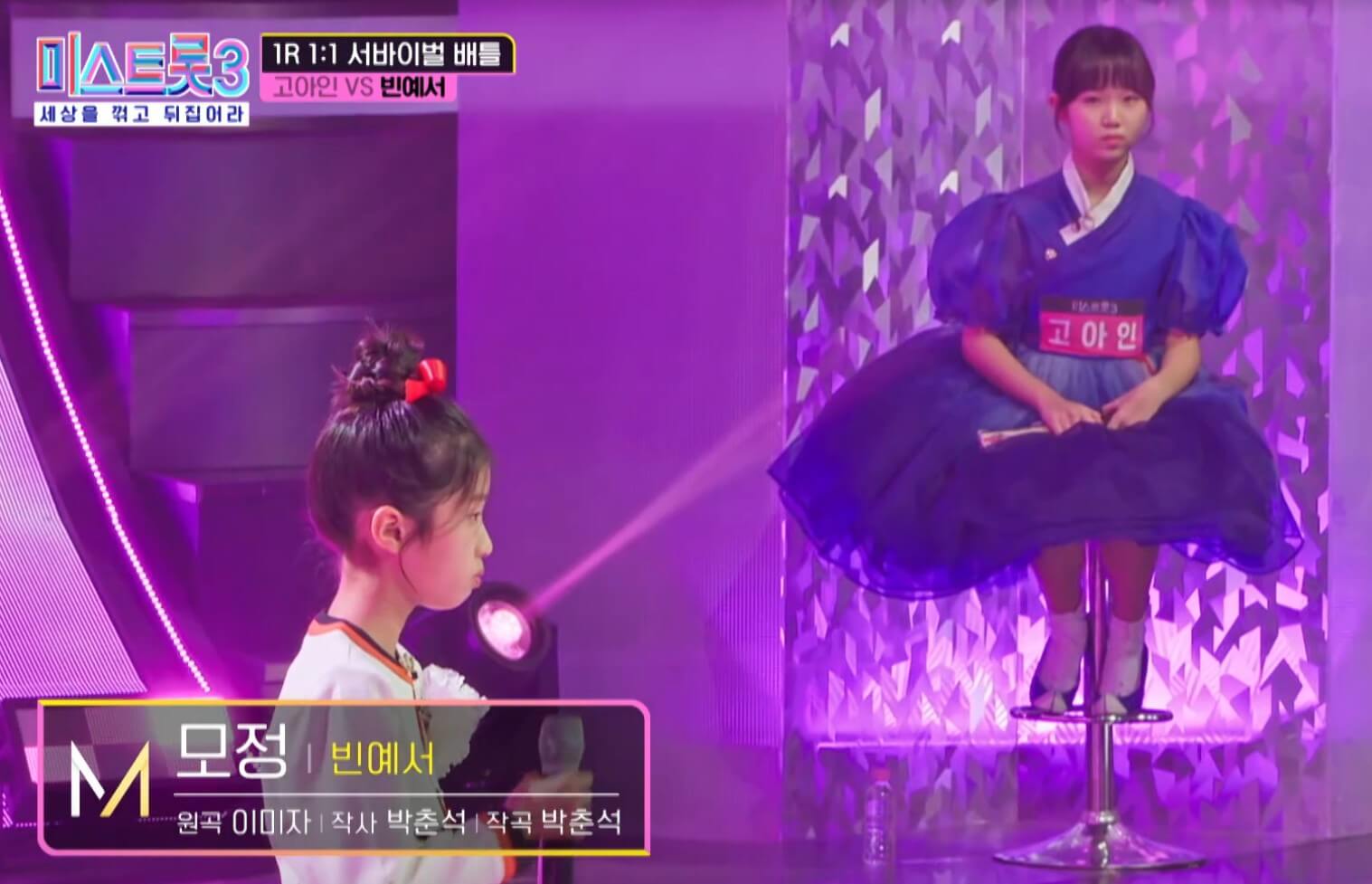 1년동안 받은 상금만 3천5백만 원이라는 고아인과 최연소 KBS 대상에 빛나는 빈예서 두신동의 대결 또한 눈과 귀가 즐거운 무대였습니다. 어린 나이답지 않은 자신감 넘치는 무대와 성인가수들에 필적할 노래실력의 고아인과 가슴 아픈 사연을 딛고 듣는 사람들 모두 눈물을 흘리게 만든 깊은 감성을 보여준 빈예서 두 참가자들은 모두 극찬과 함께 올 하트로 다음라운드에 진출하게 되었습니다.